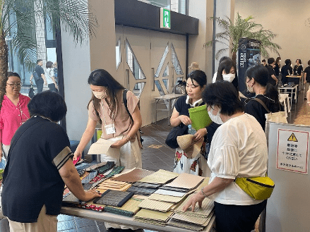 事前に予告がしてあった訳でもないのですが「ミニ畳作っていかれませんか?」という呼び込みは女性建築士の方々の興味を高めるのに抜群の効果があるようです。